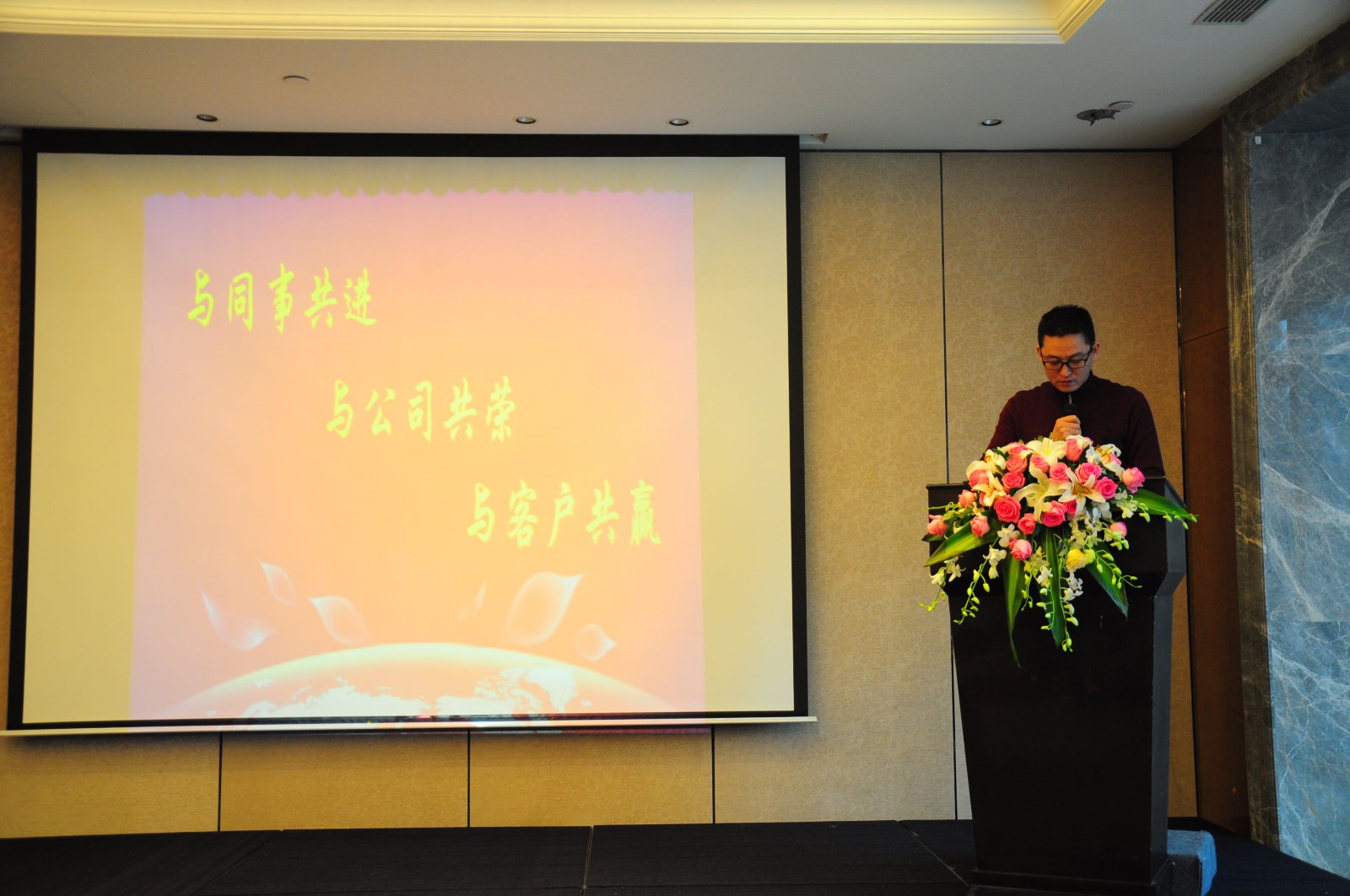 在热烈的掌声中,执行董事蒋利宏先生上台发表重要讲话。他表示,成都利方致远公司15载风雨历程,从不曾畏惧挑战,与同事共进,与公司共荣,与客户共赢。