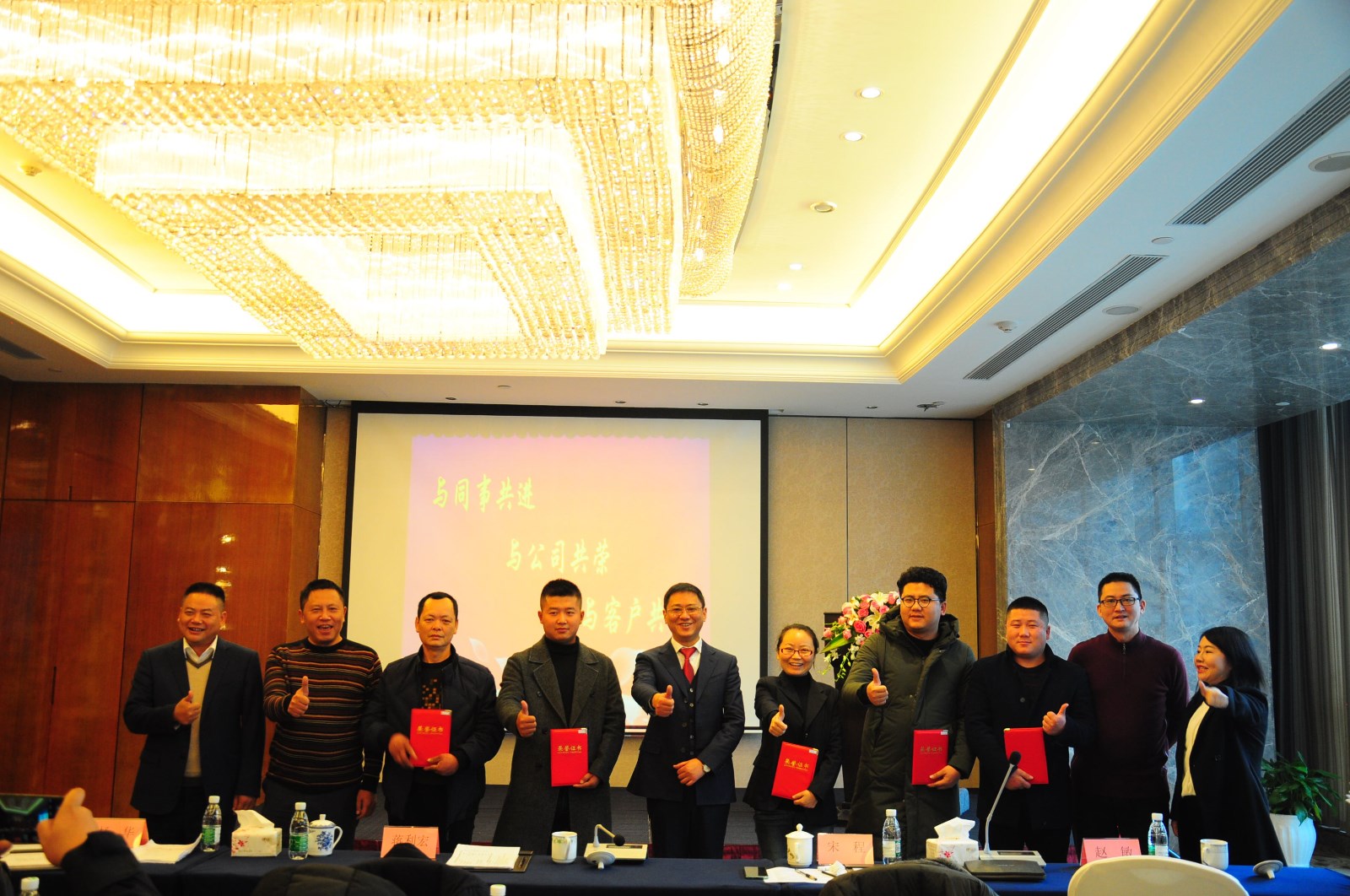 宋总宣读了获奖名单,公司领导为优秀员工颁发荣誉证书,并与优秀员工们亲切合影。全体员工也为获奖人员献上最真挚的祝福和热烈的掌声。
