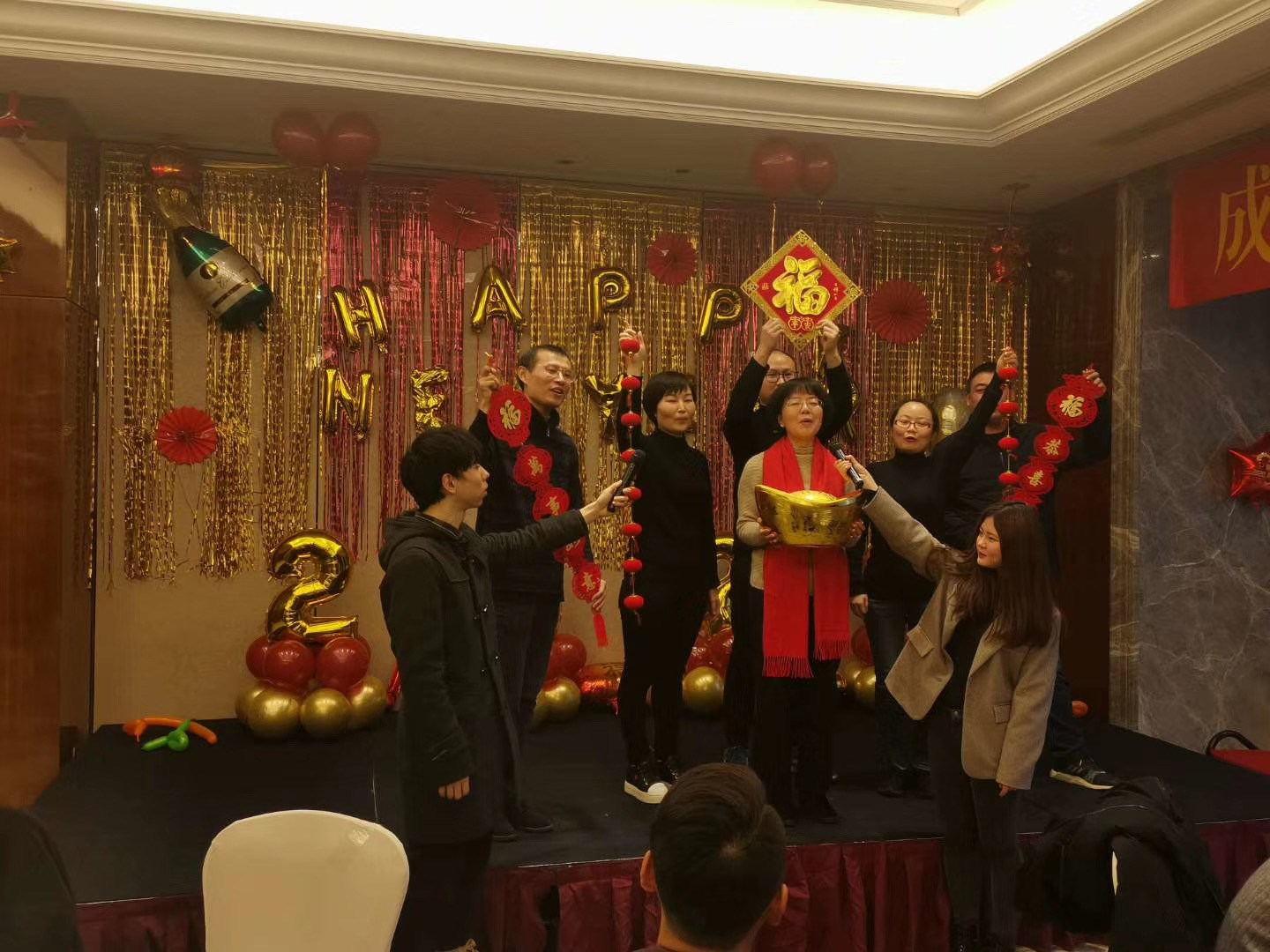 经过了一整天严谨的会议议程,晚上的团年宴,就显得轻松惬意。别出心裁的诗朗诵、热情洋溢的歌舞、激动人心的抽奖环节。形式各异给到场的领导、嘉宾和全体员工带来了一场别开生面的视听盛宴。