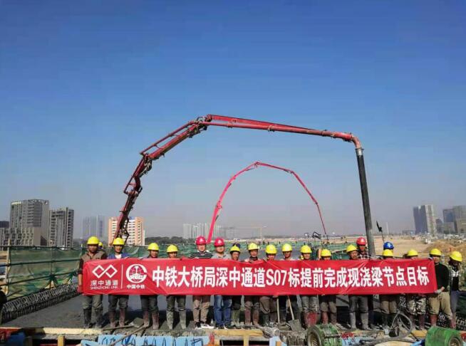 深中通道S07标连续梁项目A匝道32一35#最后一联箱梁的浇筑,投入大量人力物力,共计11个班组二百多人,精心组织、合理安排,部分工种通宵加班,在2021年1月15日提前13天完成深中通道大桥局现浇箱梁浇筑节点目标任务,为我公司赢得大桥局领导的好评。