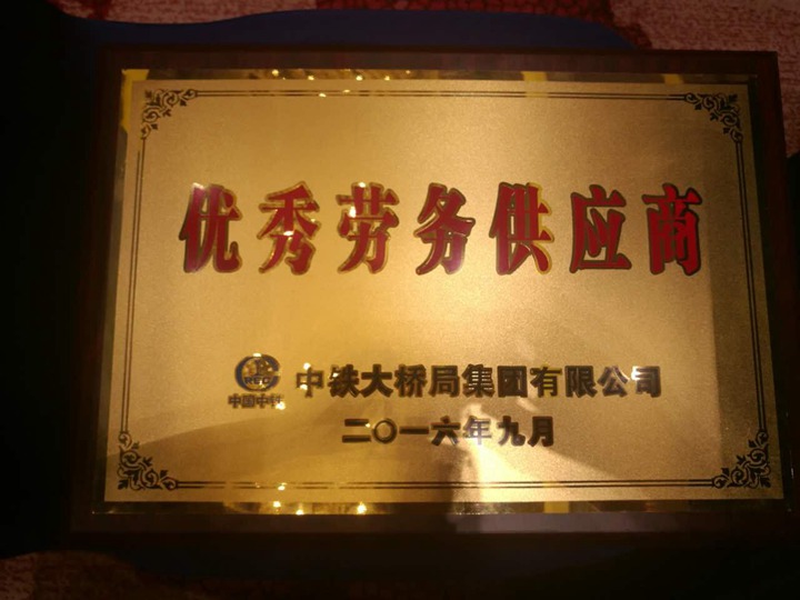9月13日,在武汉世茂希尔酒店召开的中铁大桥局集团“优秀供应商”表彰大会暨展览会上,我公司被授予“优秀劳务供应商”荣誉奖牌。中铁大桥局集团充分肯定了我公司多年来诚信经营的理念,热情周到的服务和综合管理的实力,充分表明我公司已经成为中铁大桥局集团公司发展的重要合作力量,为中铁大桥局重大工程项目实施和企业持续健康发展作出了积极的贡献。