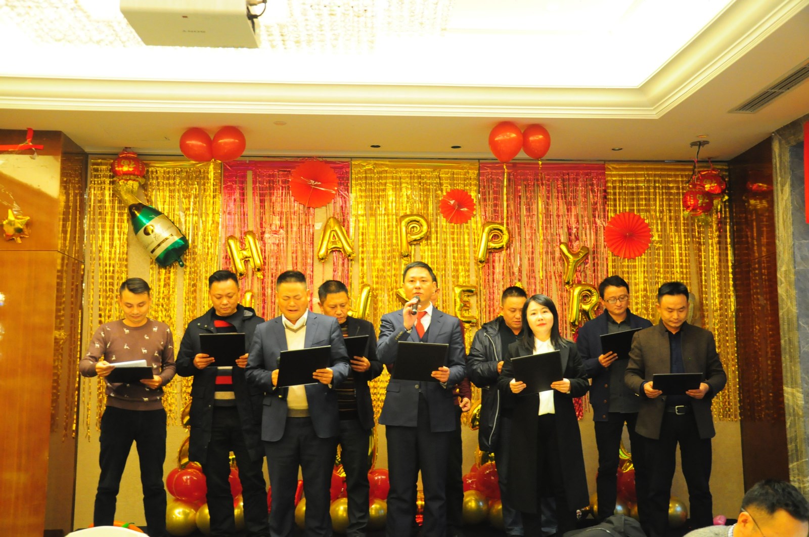 经过了一整天严谨的会议议程,晚上的团年宴,就显得轻松惬意。别出心裁的诗朗诵、热情洋溢的歌舞、激动人心的抽奖环节。形式各异给到场的领导、嘉宾和全体员工带来了一场别开生面的视听盛宴。
