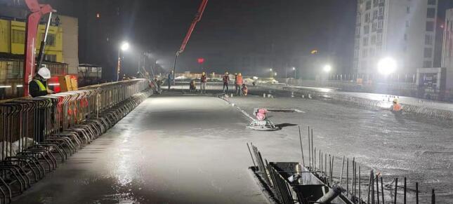 2021年1月14日项目部迎来今年第一次箱梁浇筑,浇筑部位是项目共计五联,二十幅箱梁的第二联左幅主线桥箱梁底板。项目部会一直坚持高标准、高质量的施工要求,确保工程的顺利进行。