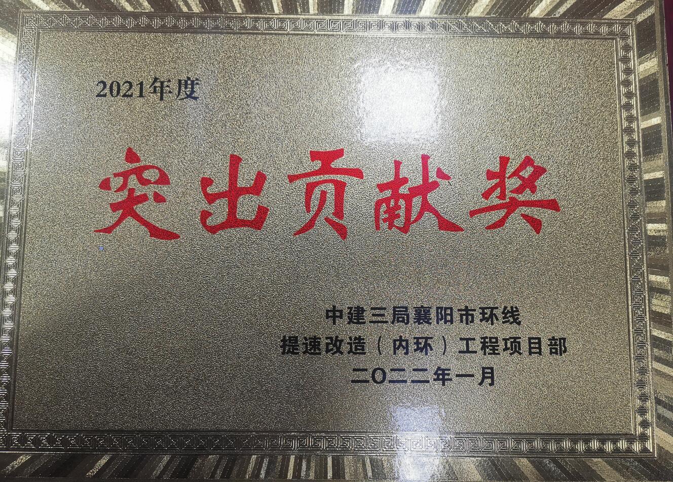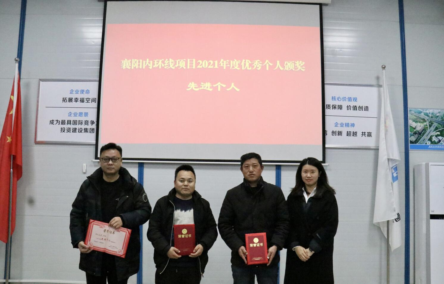 2022年1月20日,在中建三局襄阳市环线提速改造(内环)工程项目部召开的表彰大会上,成都利方公司被授予“2021年度突出贡献奖”荣誉奖牌,襄阳内环项目部经理赵勇荣获“先进个人奖”。充分表明中建三局襄阳市环线提速改造(内环)工程项目部对我公司的认可,也是对我公司襄阳内环项目施工管理工作的肯定。