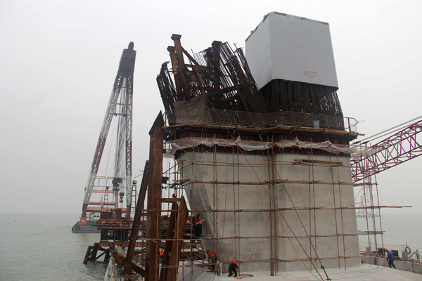 3月10日,中铁大桥局承建的港珠澳大桥CB05标主桥九洲航道桥主墩206号墩首个钢节段安装完成,这标志着港珠澳大桥主塔正式进入钢塔安装节段。首个钢节段为T0节,长6.2米,宽5.9米,高5.9米,重160吨,安装过程共耗时1小时10分钟。为保证首个钢节段安装成功,港珠澳大桥项目部细化施工方案,精心组织各项资源,认真进行技术交底。