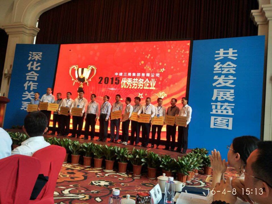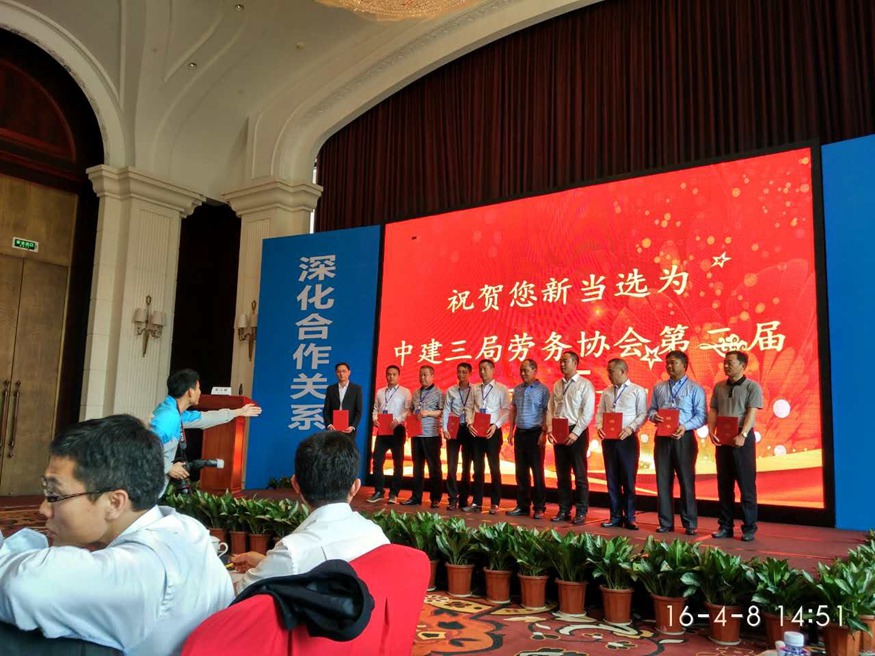 在这次会议中,我司不仅获得了中建三局“2015年度优秀劳务企业”的光荣称号,公司总经理蒋利宏先生还被聘为中建三局劳务协会第二届理事会理事。会议期间,我司总经理蒋利宏先生结合我公司现有工程项目进行了经验交流。