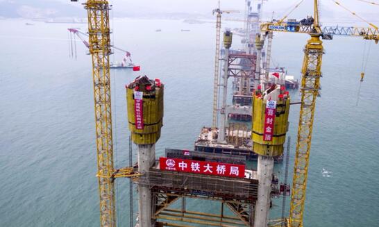 平潭海峡公铁两用大桥首个航道桥主塔封顶